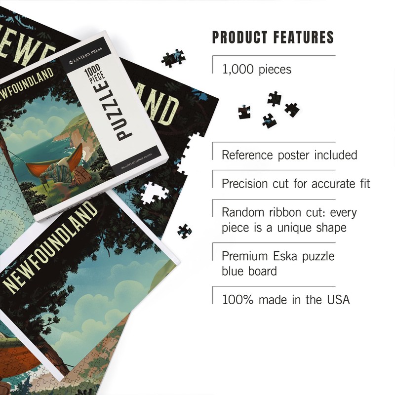 • 18.5 x 27.75 inches Lantern Press 1000 Piece Jigsaw Puzzle, Newfoundland, Today's Office, Coastal Series, Hammock on Beach