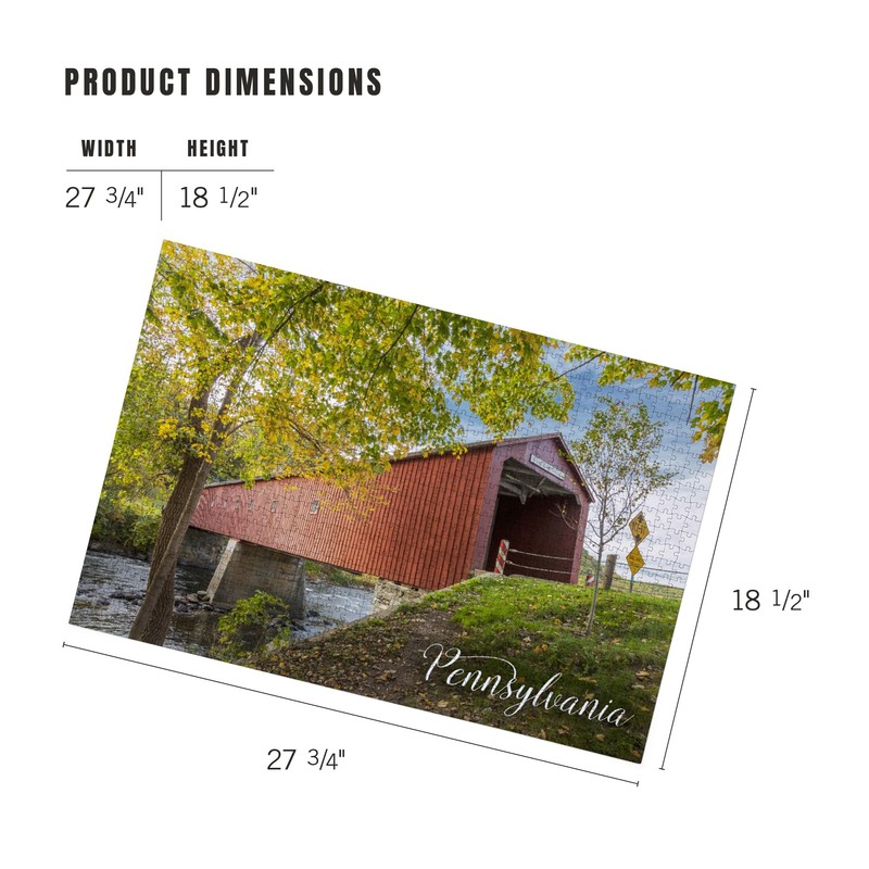 - 18.5 x 27.75 inches Lantern Press 1000 Piece Jigsaw Puzzle, Pennsylvania, Covered Bridge