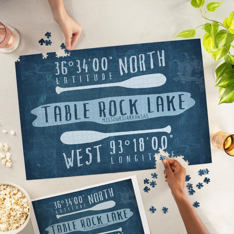 • 18.5 x 27.75 inches Lantern Press 1000 Piece Jigsaw Puzzle, Table Rock Lake, Lake Essentials, Latitude and Longitude