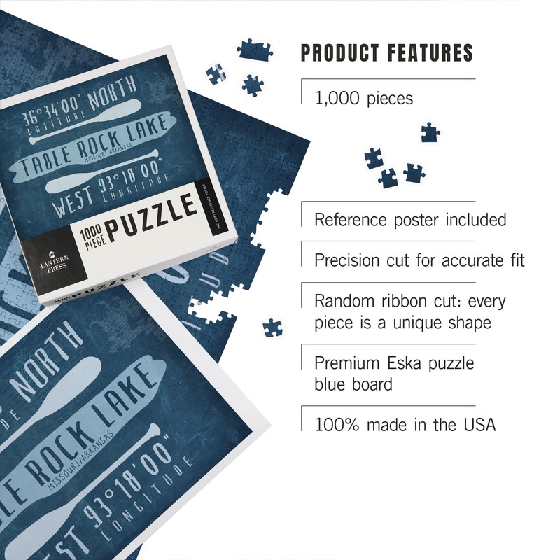 Lantern Press 1000 Piece Jigsaw Puzzle, Table Rock Lake, Lake Essentials, Latitude and Longitude