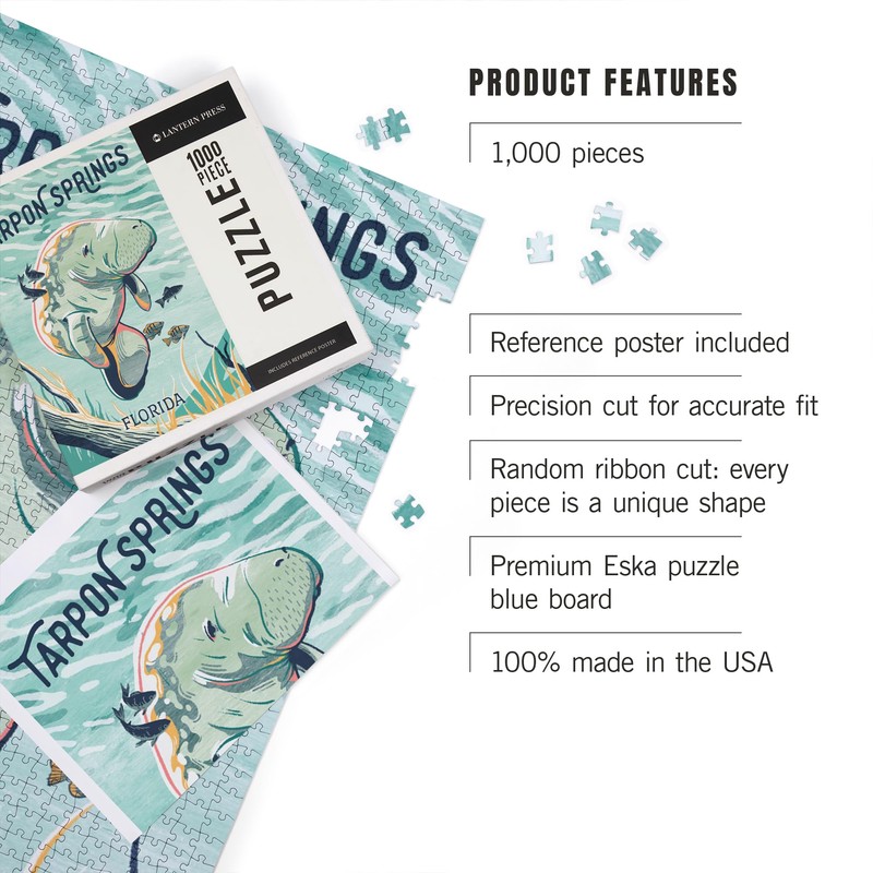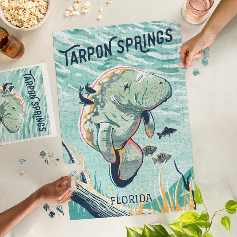 - 18.5 x 27.75 inches Lantern Press 1000 Piece Jigsaw Puzzle, Tarpon Springs, Florida, Graphic Pastel, Manatee