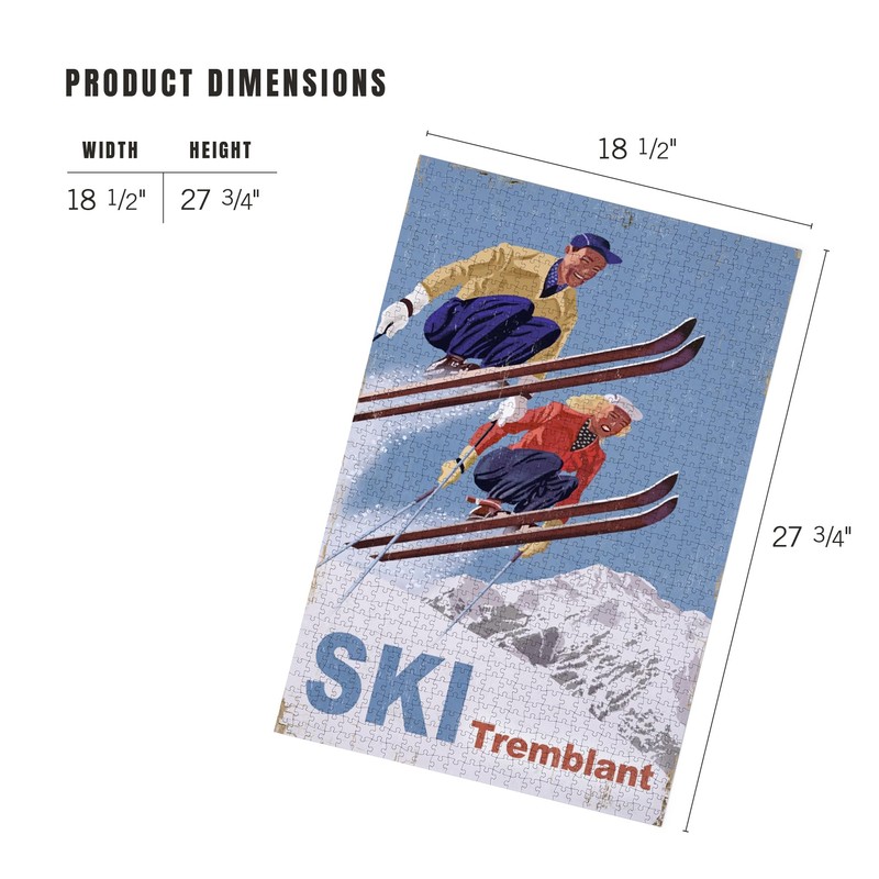- 18.5 x 27.75 inches Lantern Press 1000 Piece Jigsaw Puzzle, Tremblant, Vintage Skiers