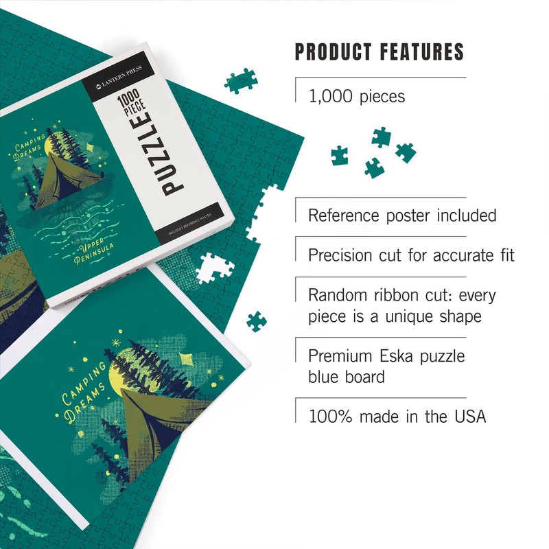 - 18.5 x 27.75 inches Lantern Press 1000 Piece Jigsaw Puzzle, Upper Peninsula, Michigan, Lake Life Series, Camping Dreams