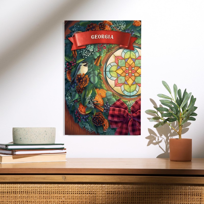Lantern Press 12x18 Inch Premium Wood Sign, Ready to Hang Wall Decor, Georgia, Front Door with Christmas Wreath