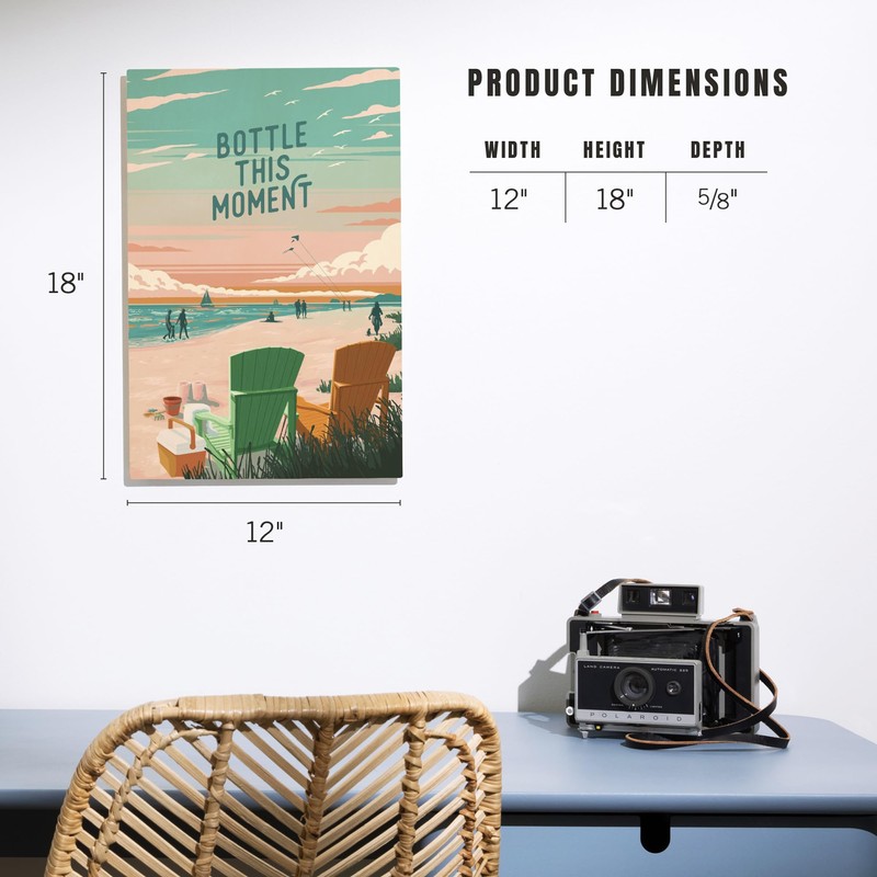 - 12 x 18 x 5/8 inch, Lantern Press 12x18 Inch Premium Wood Sign, Ready to Hang Wall Decor, Painterly, Bottle This Moment, Beach Chairs,