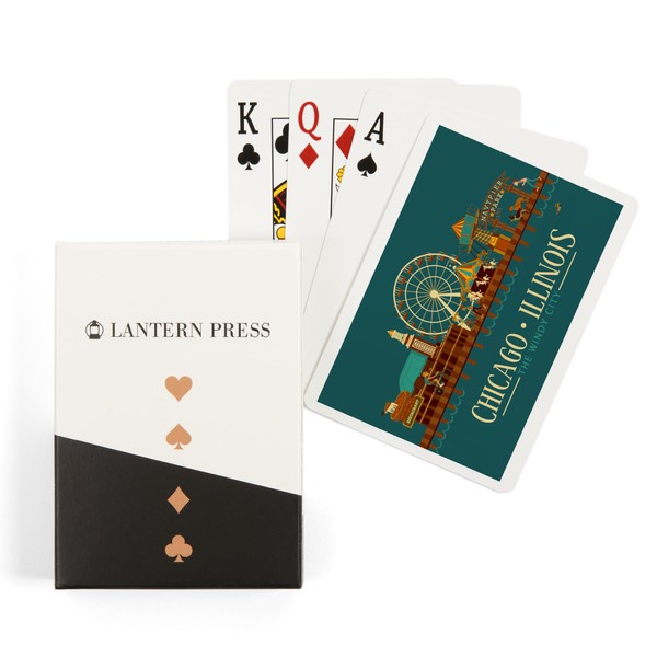 High-quality playing cards from Lantern Press, with unique artwork of Chicago, Illinois, The Windy City, Simplified Geometric (52 Playing Cards, Poker Size Card Deck with Jokers).