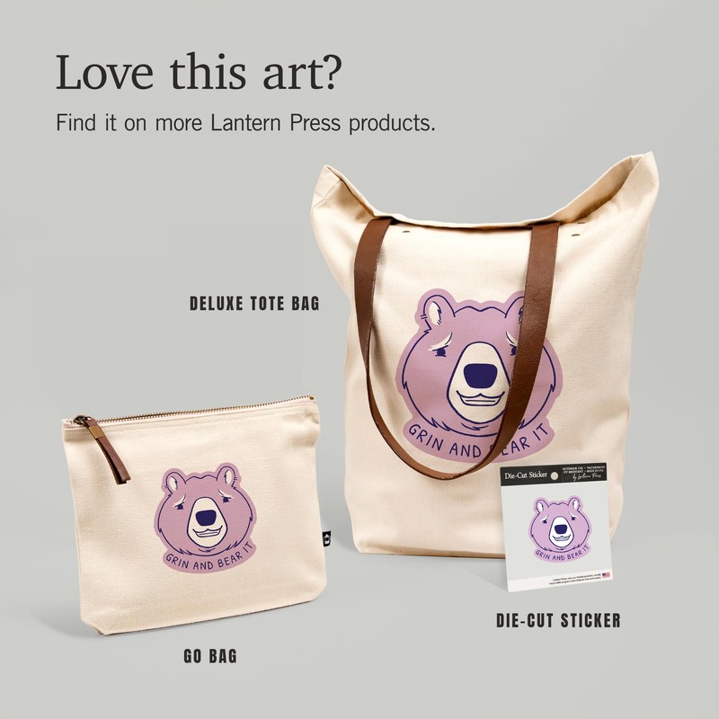 Lantern Press Humorous Animals Collection, Bear, Grin and Bear It, 100% Cotton Zipper Pouch, Travel Accessory, Go Bag