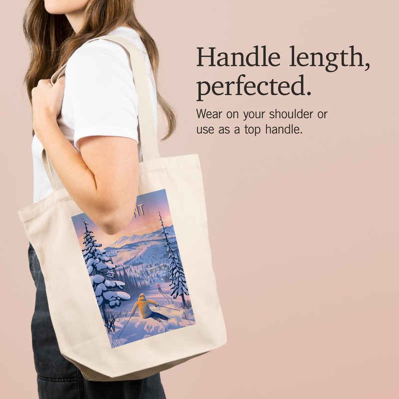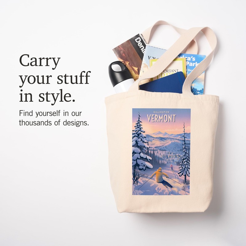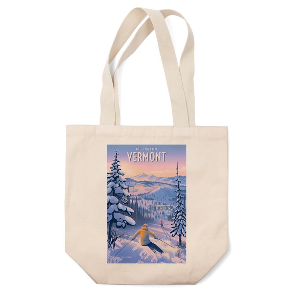 - Killington, Vermont, Ski for Miles, Skiing (100% Cotton Canvas Reusable Tote Bag), Size of 14.75 inches long x 14.25 inches wide x 6 inches deep.