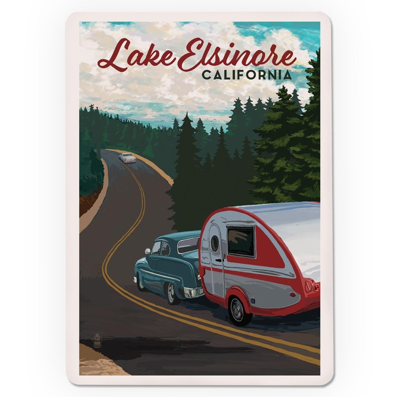- Lake Elsinore, California, Retro Camper on Road (52 Playing Cards, Poker Size Card Deck with Jokers), Made in the USA.
