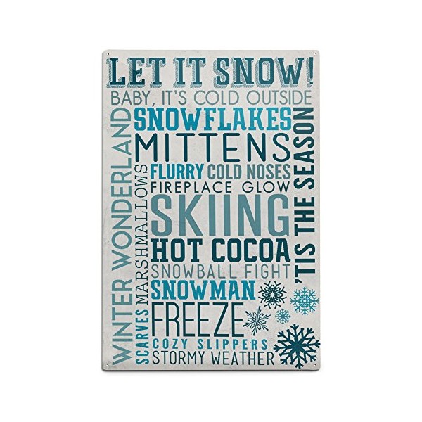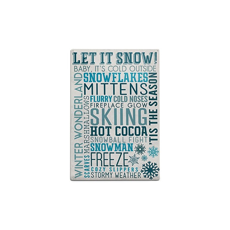 Lantern Press Let It Snow Typography (12x18 Aluminum Wall Sign, Wall Decor Ready to Hang)