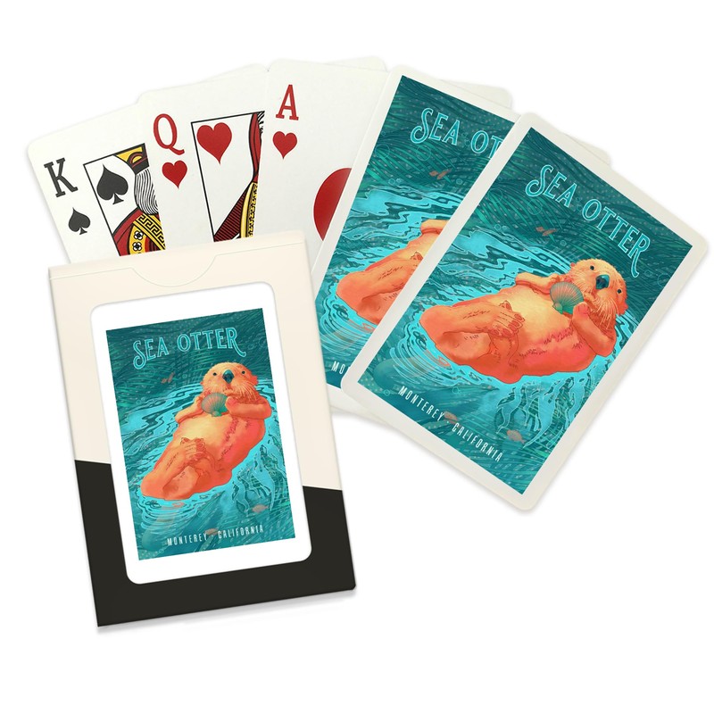 Lantern Press Monterey, California, Fluid Linework, Sea Otter (52 Playing Cards, Poker Size Card Deck with Jokers)