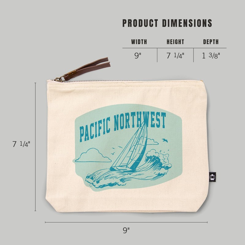 - Pacific Northwest, Artist's Sketchbook, Sailboat At Sea, 100% Cotton Zipper Pouch, Travel Accessory, Go Bag, Size of 7.25 x 9 inches.
