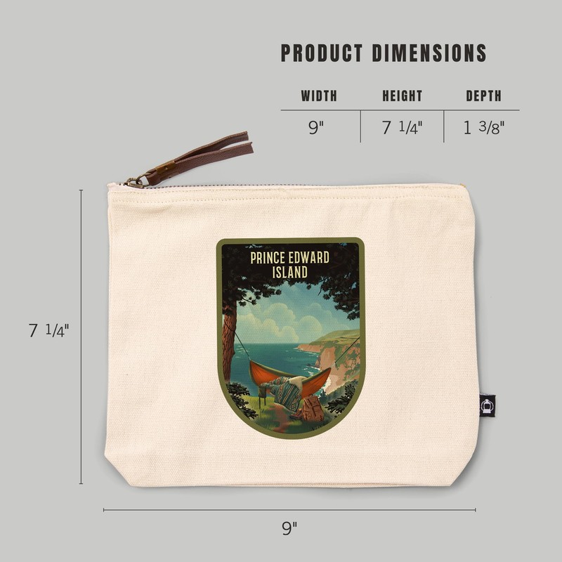 - Prince Edward Island, Today's Office, Coastal Series, Hammock on Beach, , 100% Cotton Zipper Pouch, Travel Accessory, Go Bag, Size of 7.25 x 9 inches.