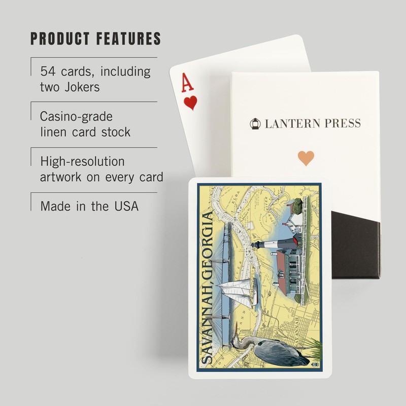 - Savannah, Georgia, Nautical Chart (52 Playing Cards, Poker Size Card Deck with Jokers), Made in the USA.