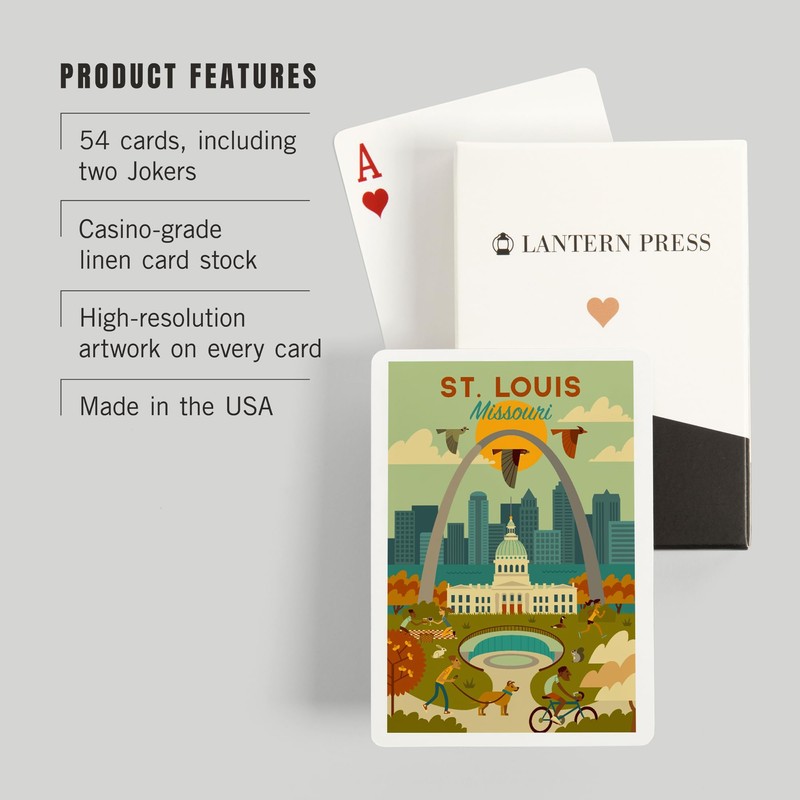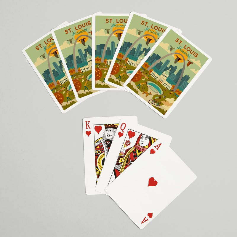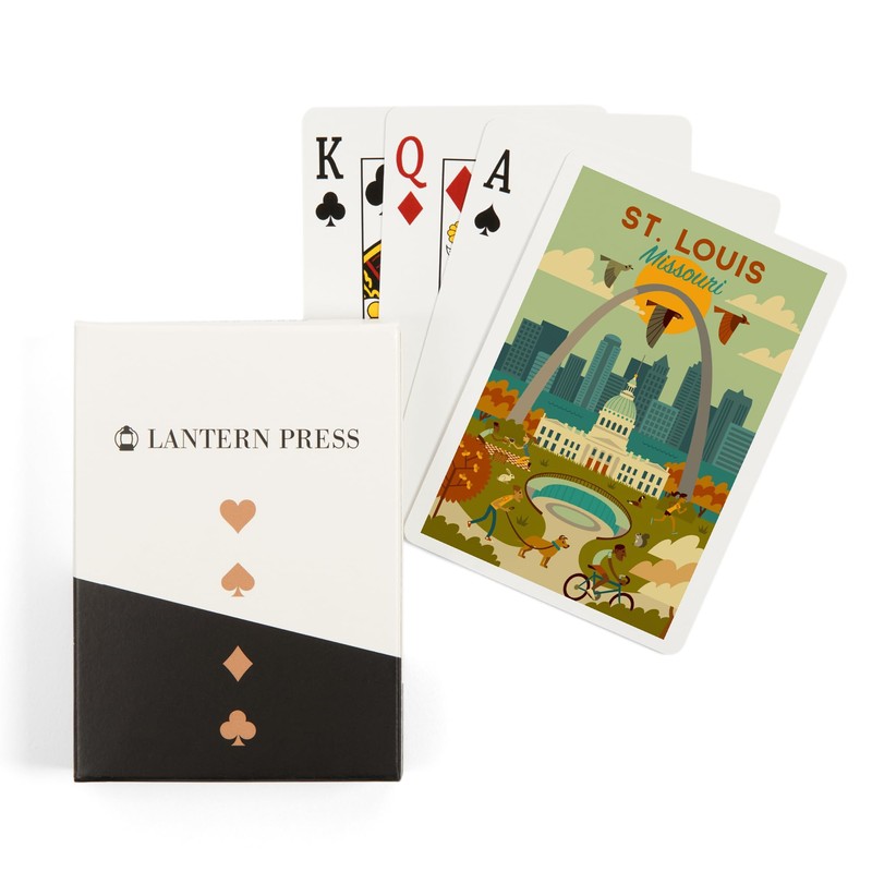 - St. Louis, Missouri, Geometric National Park Series (52 Playing Cards, Poker Size Card Deck with Jokers), Made in the USA.
