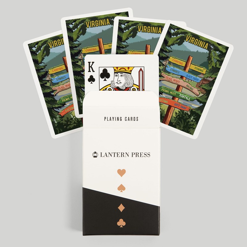 Lantern Press Virginia, Signpost, Forest and Camp (52 Playing Cards, Poker Size Card Deck with Jokers)