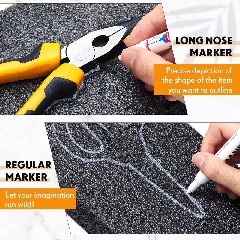 - Detailed Traceability with Long Nose Marker: the white ink long nib marker is a key tool for precision, enabling you to trace objects on foam or inserts before cutting; Boasting a long reach, this marker adheres to whatever object you are tracing on, paving the way for an accurate cut