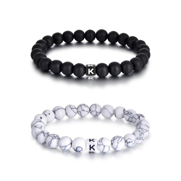 Lantine Set of 2 with Letter Bracelets 8 mm Natural Stone Couple Bracelet Bead Bracelet Comes in a Refined Gift Box, 100% brand, No gemstone