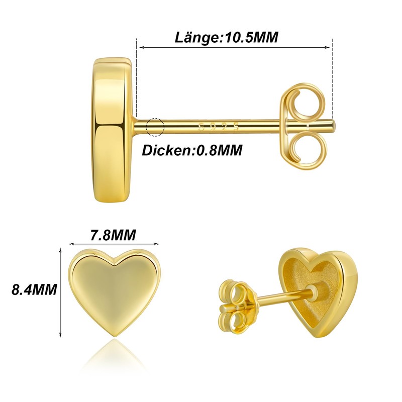 - HIGH QUALITY MATERIAL Lantines heart shaped earrings are made of 925 sterling silver and finished with a layer of gold, giving them a more radiant shine and better oxidation resistance to pure silver.