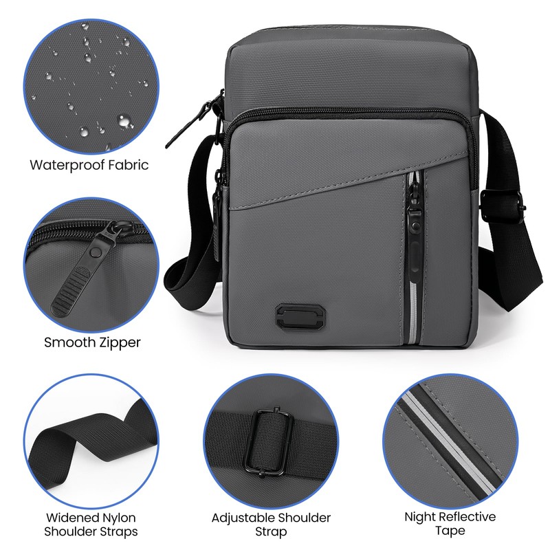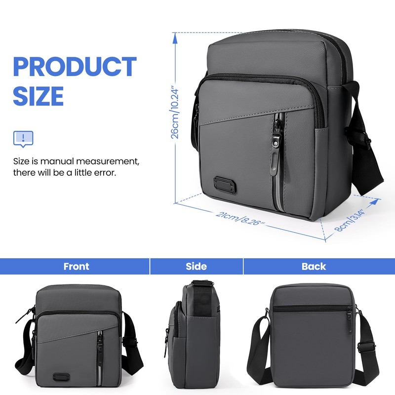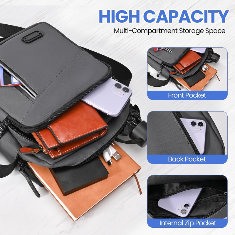 - Crossbody bag for men with multiple compartments: large storage space, multi-compartment design, convenient for classification and storage. 2 main zipper pockets, 1 front zipper pocket and 1 back pocket, 1 inner zipper pocket for important items.