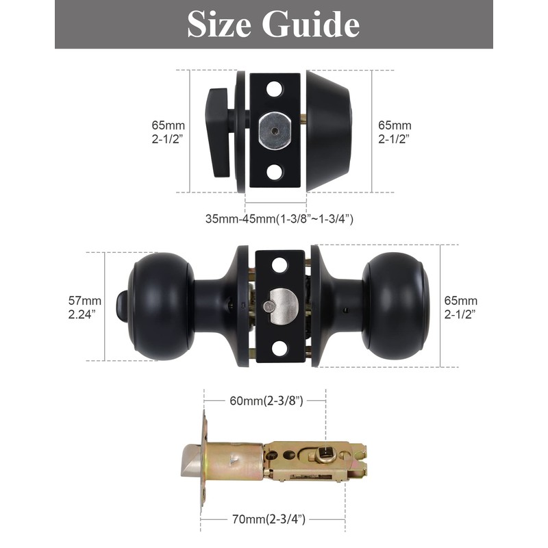 - [Flexible Installation]: Adjustable latch 2-3/8"or 2-3/4"(60mm-70mm); Fit standard door thickness: 1-3/8"to 1-3/4"(35mm- 45mm); SCRATCH RESISTANCE screwdriver, instruction and necessary fitting components included.