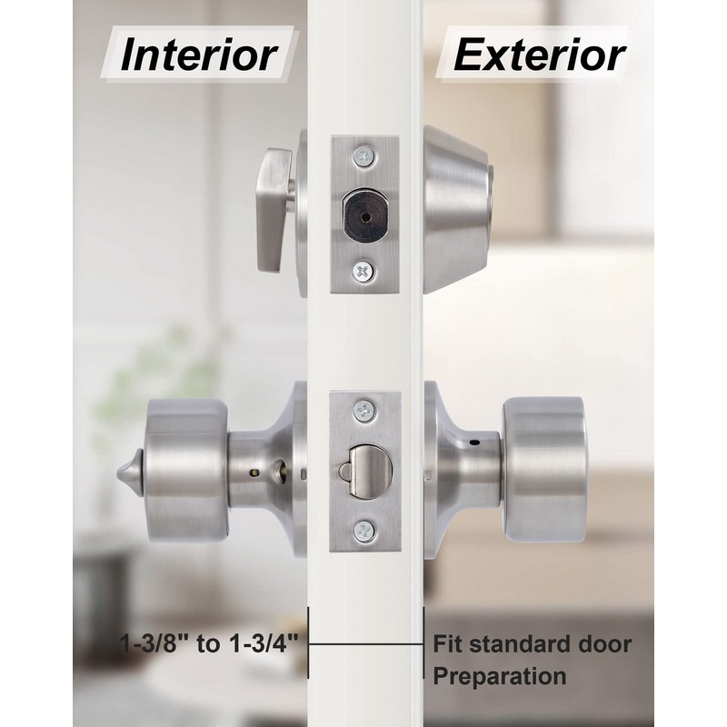 - FEATURES: Entry Door Knob(KEYED ALIKE) and deadbolt(Keyed Outside and Thumb turn button inside) set. Material: Solid Steel; Finished Colour: Satin Nickel.