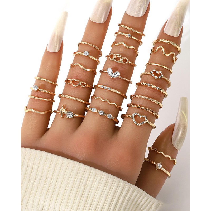 - Stacking Finger Rings:The style is simple and elegant, with cross ring, wave ring, heart ring, twist ring and so on. Many of the rings are set with numerous rhinestones and zirconias, which can sparkle in the sunlight or under the light, so you can easily become the focus of the crowd and exude glamor all the time.