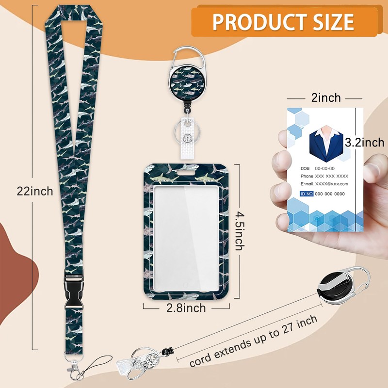 Lanyard for Id Badges,Cute Shark Badge Holder with Retractable Reel Clip,Breakaway Lanyard Vertical ID Card Protector Case for Women Nurse Doctor Teacher Student