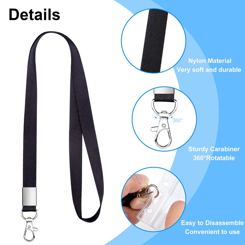 • Comfortable to wear: Our black lanyard is made of soft and durable polyester fabric, which is smooth and wear-resistant and can be washed without fading. Complete with a rotating oval metal swivel carabiner, it can be worn comfortably around your neck all day.