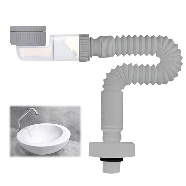 LANZLC Space-Saving Siphon, Flexible Drain Hose, 1 1/4 Inch Siphon, Adjustable Sink Siphon, Odour-Proof, Flexible Siphon, Replaceable Waste Water Pipe (Grey)