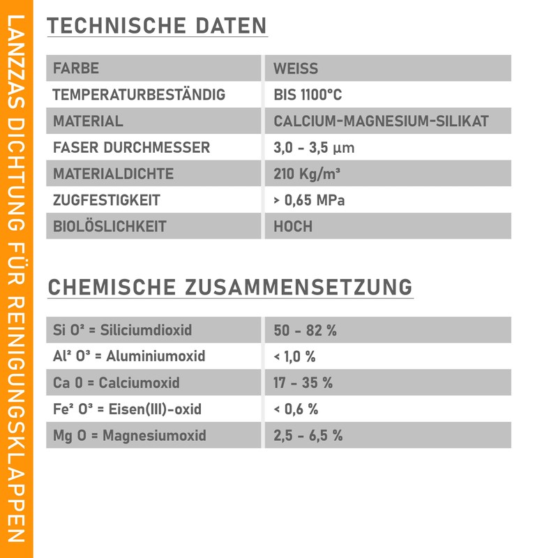 LANZZAS Gasket for stove pipes with cleaning flap, suitable for pipes with a diameter of 100 mm - 140 mm, heat resistant up to 1200 °C, can be cut to size, made of calcium-magnesium silicate fibres
