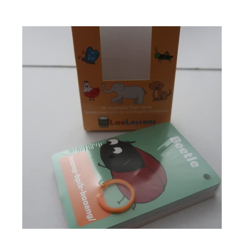 - FEATURE: Doubled-sided cards with Lao writing on the front and English/transliteration on the back