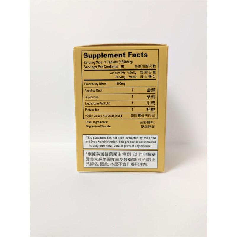 Ingredients: Angelica Root, Bupleurum, Ligusticum Wallichii, Platycodon.