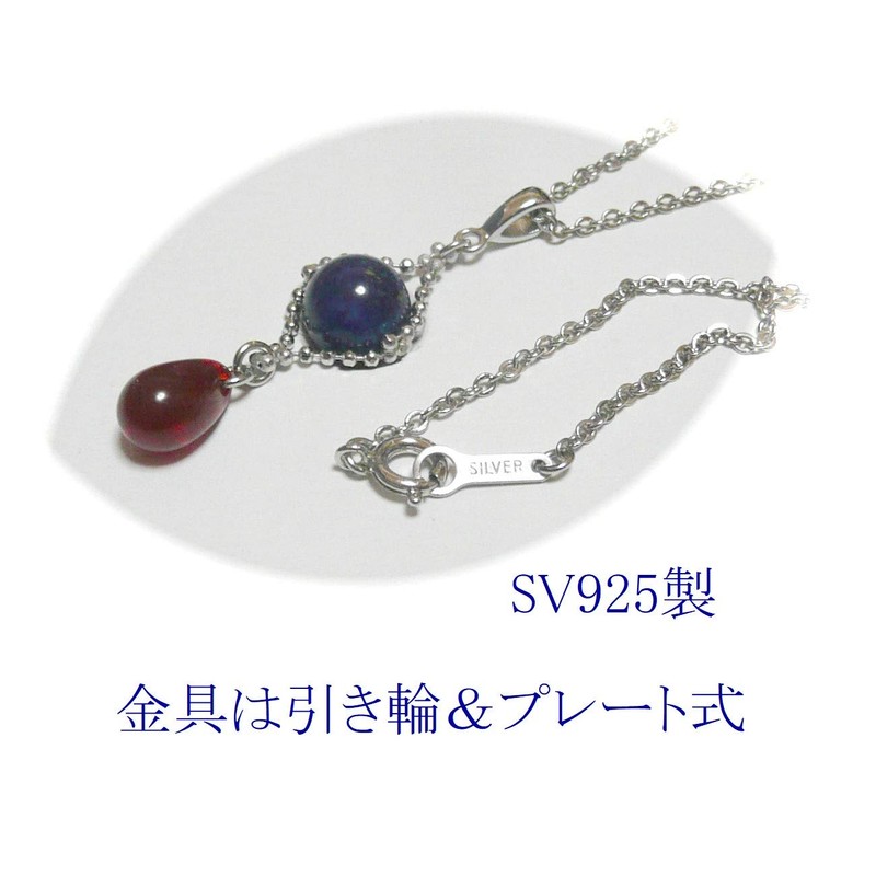 Lapis Lazuli and Red Amber Pendant Necklace Silver Color, Gemstone, Lapis Lazuli (Lazuli), Amber (Amber)