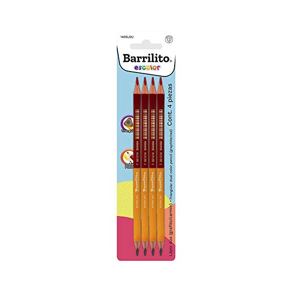 Lápiz bicolor triangular, Grafito-Carmín, Blíster con 4 lápices dúo.