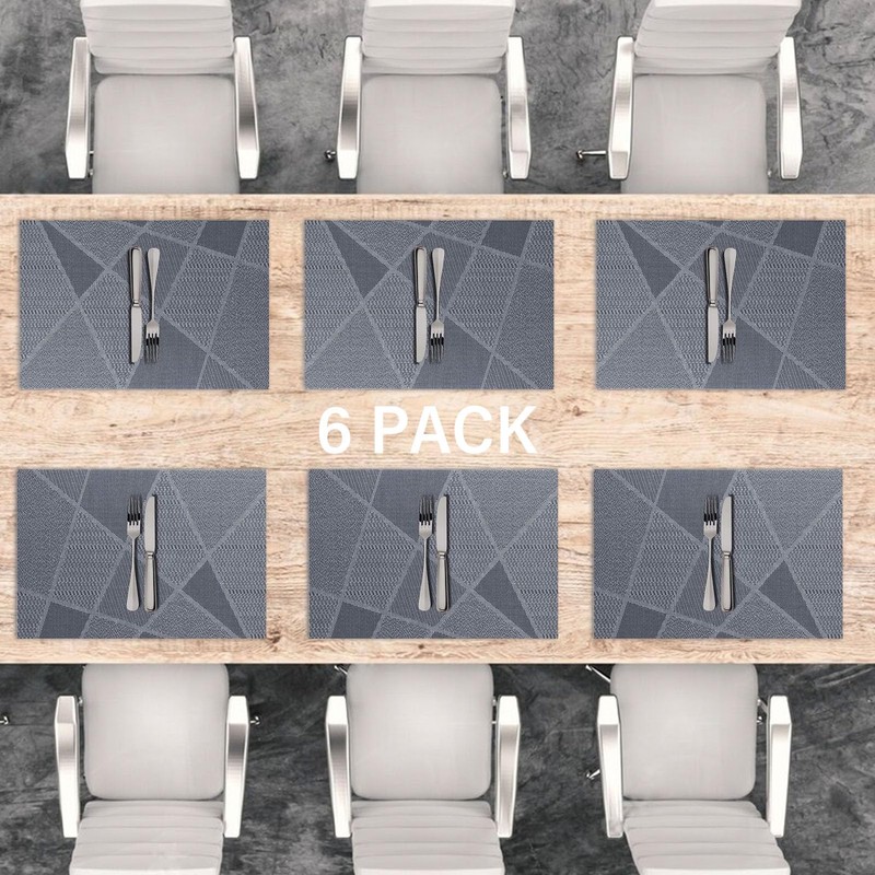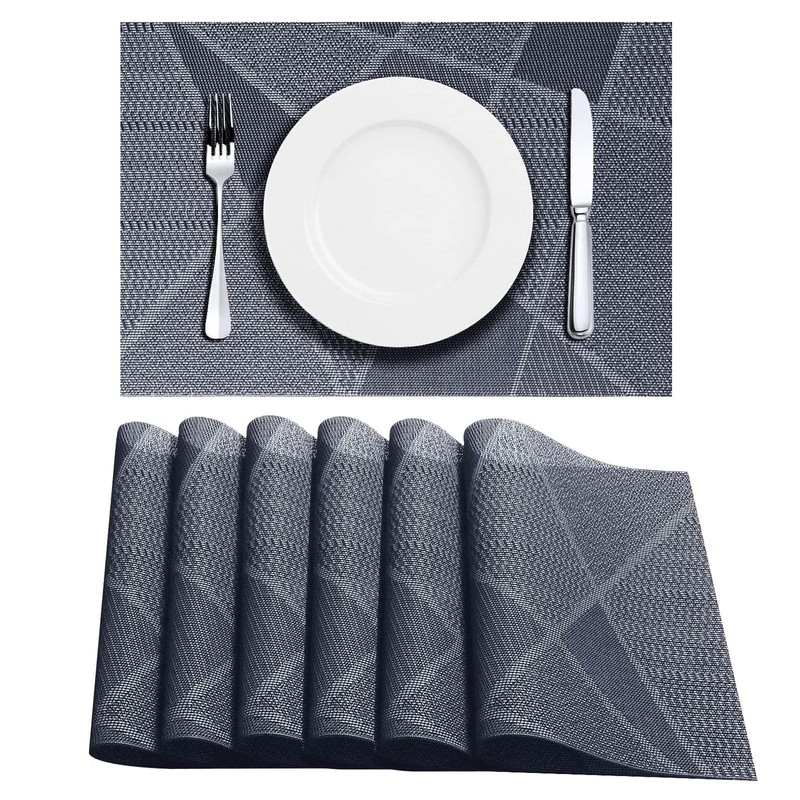 LAPONO Washable Place Mats, Set of 6, Washable Place Mats, Rectangular, Heat-Resistant Placemats, Grey PVC Placemats (Black Grey, 6 Pieces)