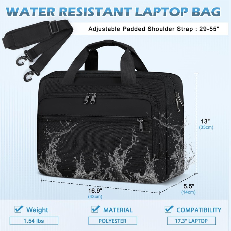 Laptop Bag 17.3 Inch Messenger Bag Mens Briefcase Waterproof Laptop Case Computer Bag for Men Women Laptop Carrying Case for Travel Business School,Black