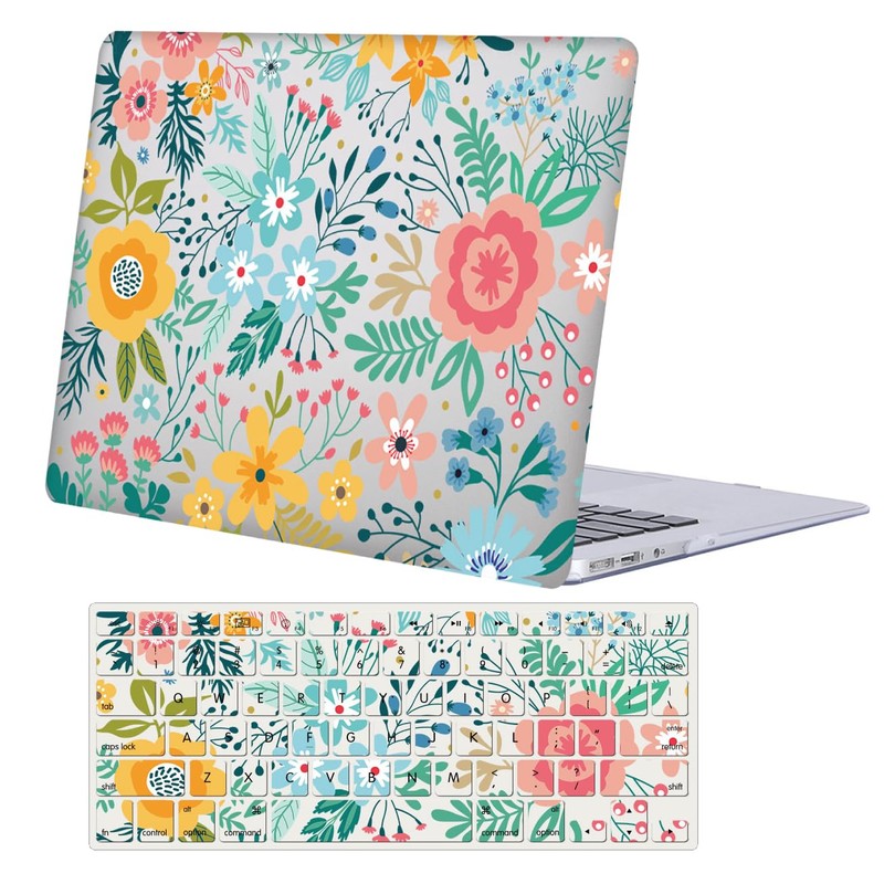 Laptop Hard Case Compatible with MacBook Air 13 inch Case 2017 2016 2015 2014 2013 2012 2011 2010 Release Model A1466 A1369, Plastic Hard Shell Case Cover & Keyboard Cover Skin, Colorful Flower