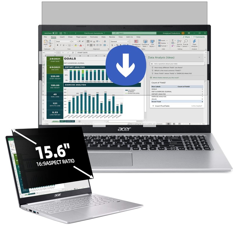 Laptop Privacy Screen 15.6 Inch Aspect Ratio 16:9, Anti Blue Light Anti-Glare Screen Protector, Removable Privacy Screen Protector Privacy Filter Compatible with