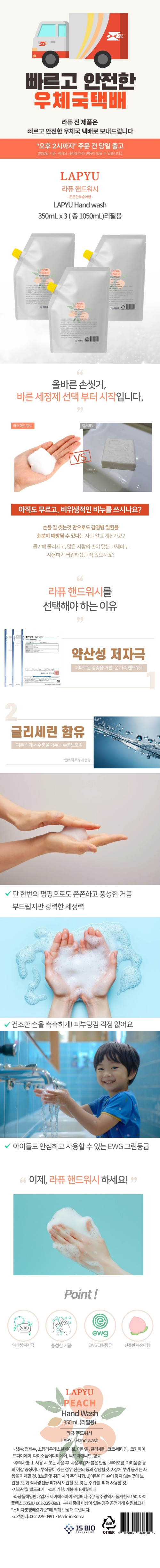 라퓨 거품 핸드워시 복숭아향 리필용 - 350ml x 3개