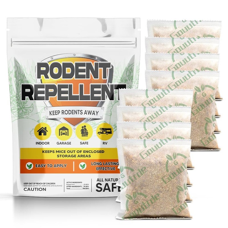 - Highly Effective Mice Repellent (8 Pouches in the Package): The peppermint mice repellent pouches contain strong and powerful active ingredients, deliver the smell highly irritating to rodents, stop the mice and rats from chewing on wires and nesting in your Car, RV, Garage, Shed, Cabin,etc.