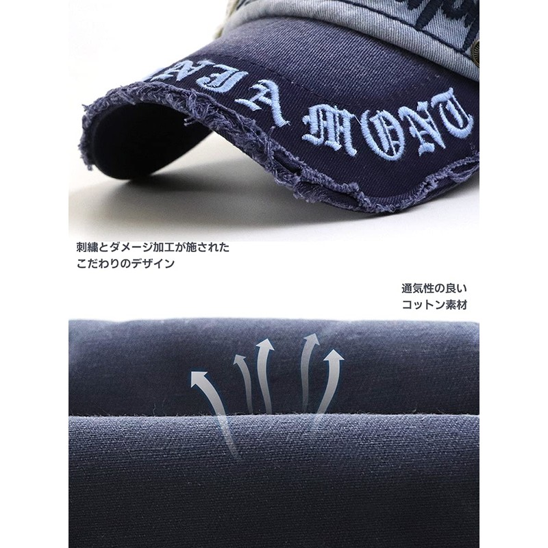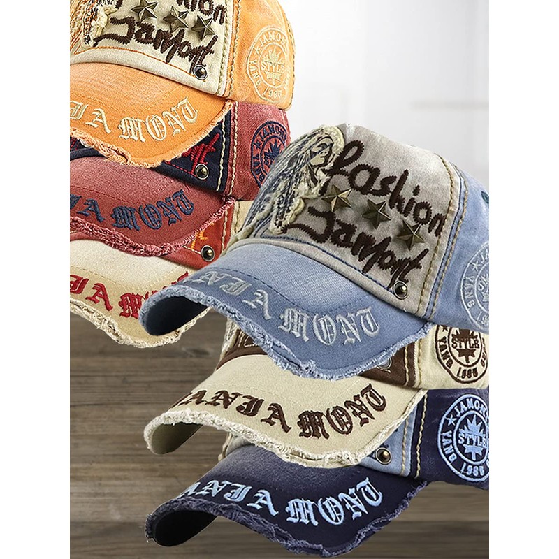 - American casual style baseball cap filled with attention to detail, such as embroidery, studs, patches, and damaged processing