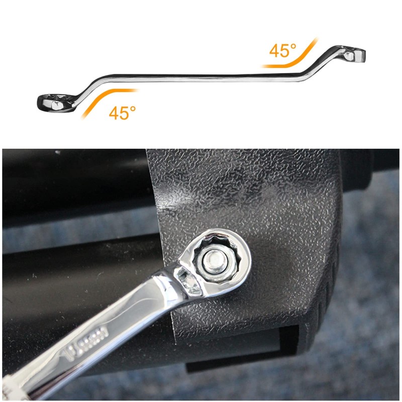Larcele Double Box Ratcheting Wrench Combination 45-Degree Offset Spanner Metric, 1Pcs STBS-02 (6-7mm)