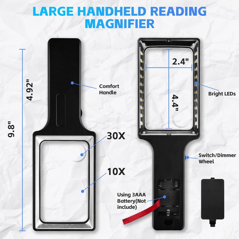 - LARGE-SCALE HIGH MAGNIFICATION: The 4.4"×2.4" (11.2×6.1 cm) lens perfectly aligns with the natural reading path of human eyes, enabling seamless left-to-right visual tracking. At 10x to 30x magnification, enjoy effortless viewing without constant repositioning.