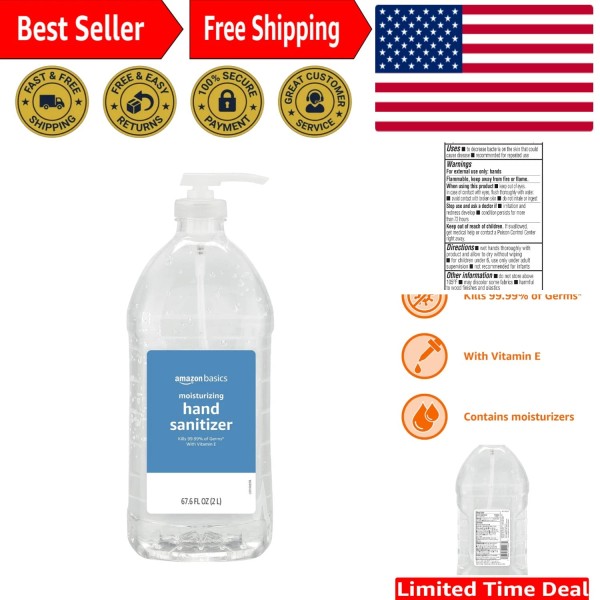 Large 67.6 Fl Oz Hand Sanitizer with 62% Ethyl Alcohol & Moisturizing Formula