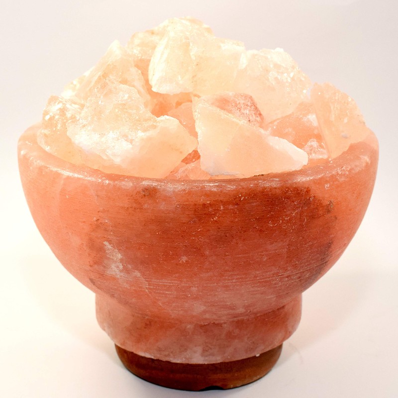 - Large crystal rocks, mined in Europe and Asia, are also used as salt lamps. A salt lamp is a lamp carved from a larger salt crystal, often colored, with an incandescent light bulb or a candle inside. The lamps give an attractive glow and are suitable for use as nightlights or for ambient mood lighting. When illuminated, salt crystals emit a soft glowing light. There is a belief that heated salt crystals emit negative ions or positive energy waves into the air.