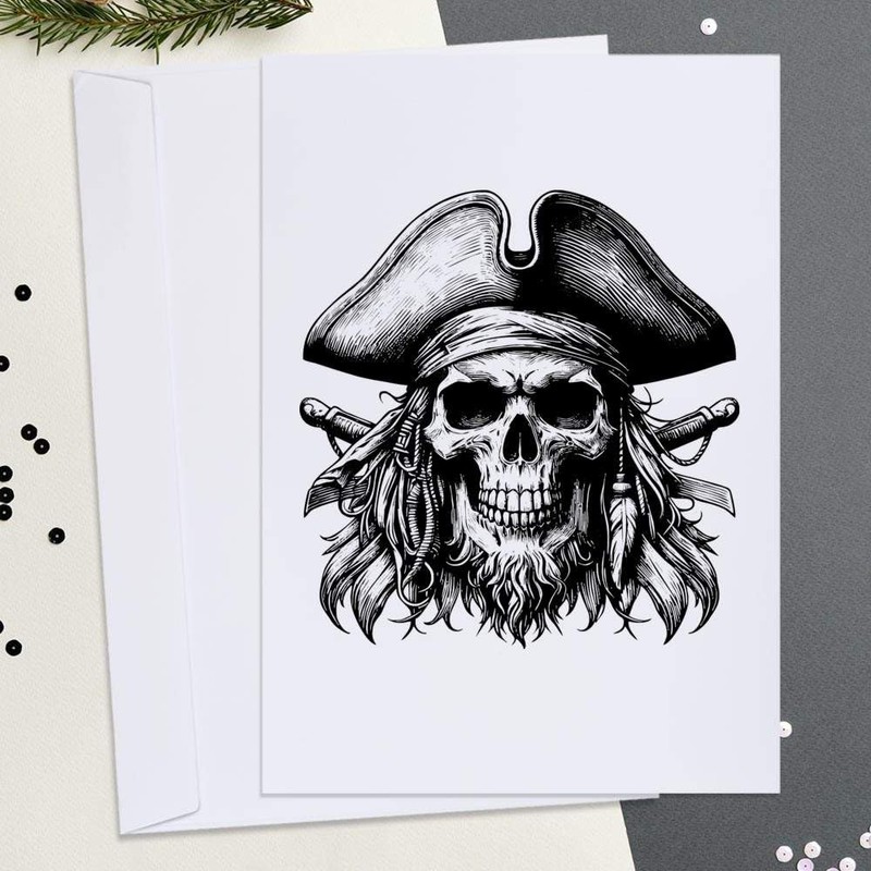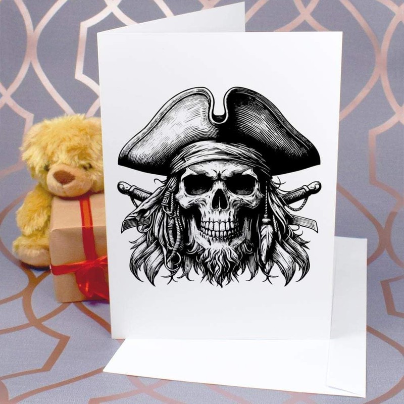 Large (A4) 'Pirate Skull with Goatee Beard' Blank Greeting Card (GC00061326)