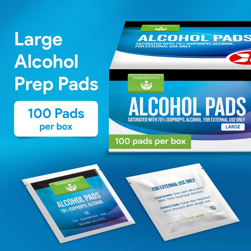 Each box of Tender Gentle Alcohol Prep Pads provides a generous supply, ensuring that you have ample stock for all your needs. Trust Tender Gentle to deliver high-quality, reliable products that prioritize your health and safety. Whether for professional or personal use, our alcohol prep pads are the hygienic choice you can depend on.
