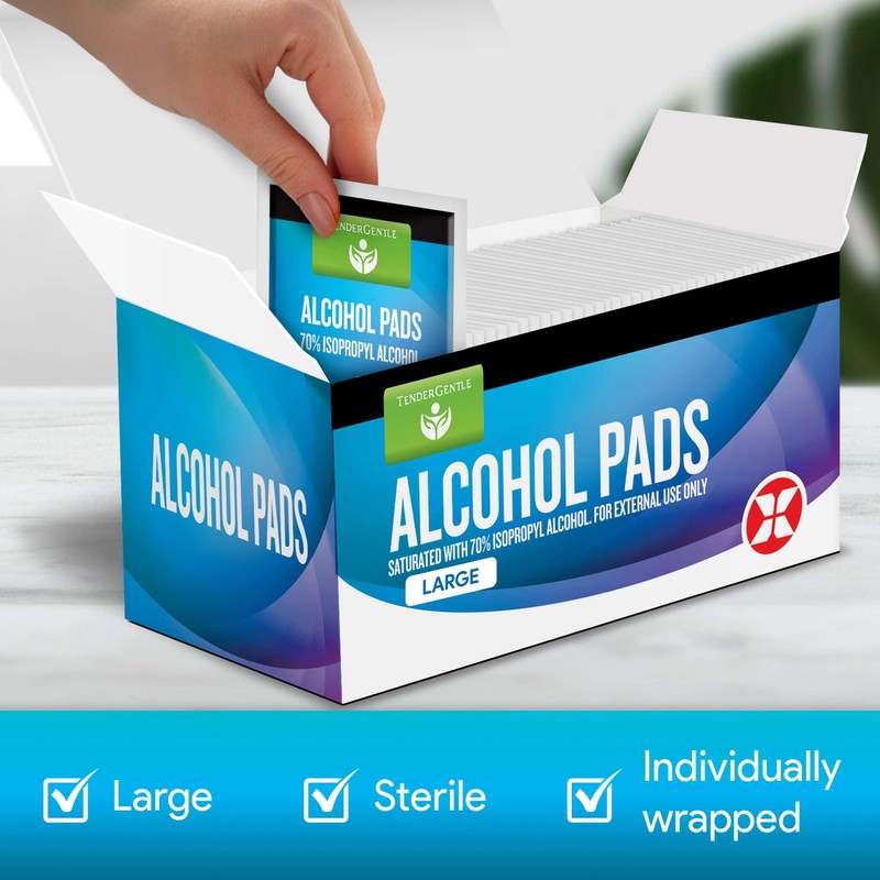 - Tender Gentle's alcohol swabs easily clean and prep the skin from dirt or debris.
