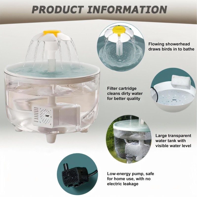 - ⭐【Safe & Quiet Operation】: Equipped with a dry-run protection system, the pump automatically shuts off when water levels are low, ensuring safe use. The bird shower ultra-quiet performance keeps your home peaceful.